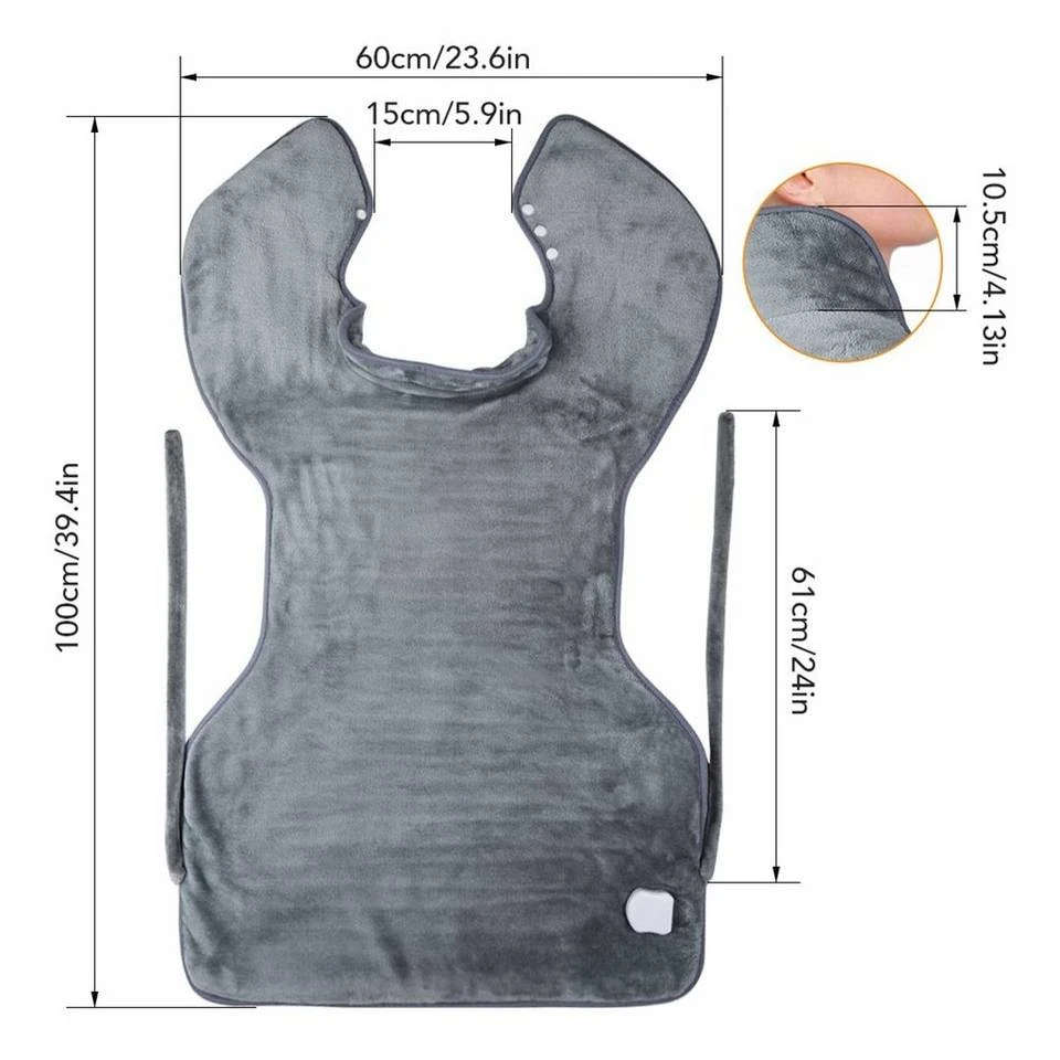 Einzigartiges Design: Hoher, verstellbarer Kragen, leicht gewichtete Kanten und verstellbare Knöpfe sorgen für individuelle Passform und Komfort. Die beiden verstellbare bauchgurt sichern das Polster für gleichmäßige Wärme. Es kann nach Ihrer Figur und Anforderungen frei angepasst werden. Das lange Stromkabel ermöglicht es Ihnen, sich frei zu bewegen während Sie sich mit dem Wickel entspannen.