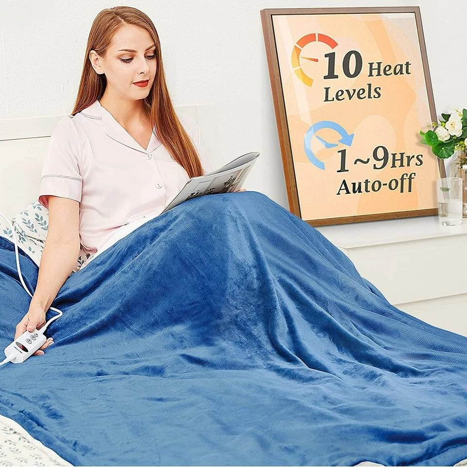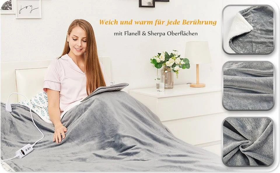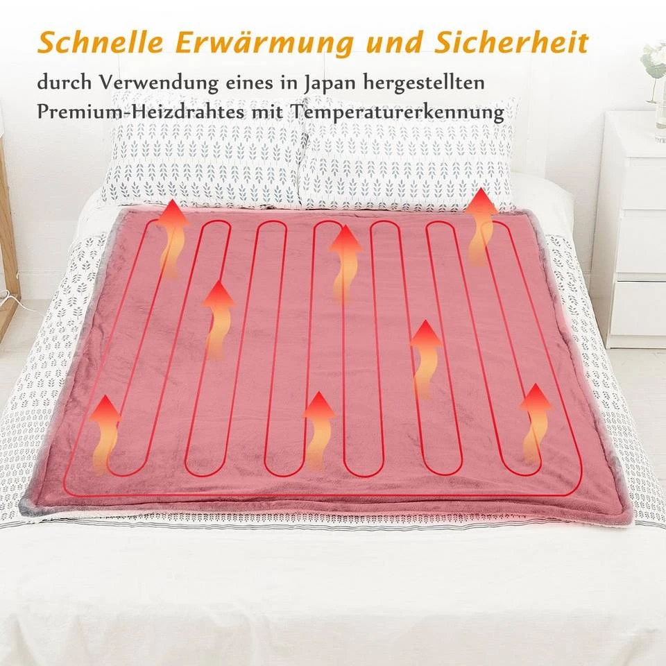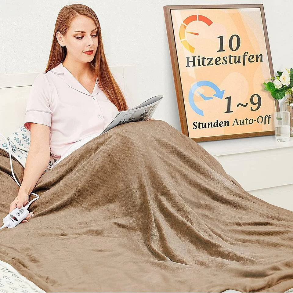 Waschbar Heizdecke mit Abschaltautomatik, 10 Heizstufen Up-to-9 Stunden Auto-Off-Timer Überhitzungsschutz, Elektrische Wärmedecke Bett Wärme Decke ETL-zertifiziert für Home & Office Schnelle Flanell