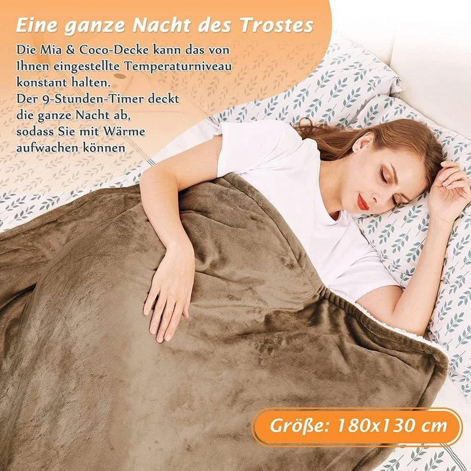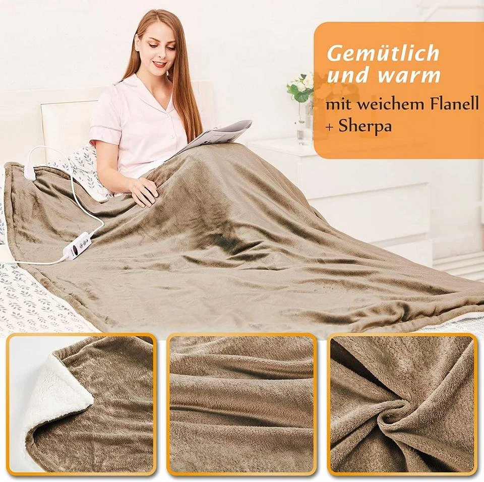 Waschbar Heizdecke mit Abschaltautomatik, 10 Heizstufen Up-to-9 Stunden Auto-Off-Timer Überhitzungsschutz, Elektrische Wärmedecke Bett Wärme Decke ETL-zertifiziert für Home & Office Schnelle Flanell