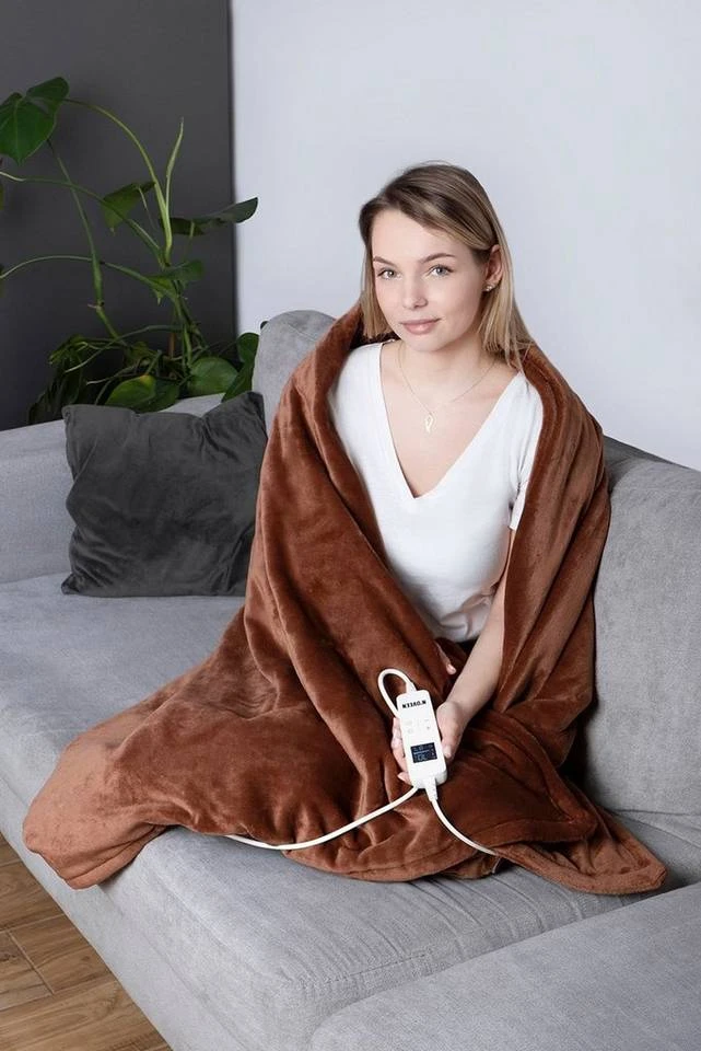 Heizdecke EB655 Brown 180 x 130 cm sorgt für Wärme und Ruhekomfort, lindert Neuralgie, lindert Muskelsteifheit, verbessert die Durchblutung und lindert auch rheumatische Beschwerden. Es sorgt für eine schnelle und gleichmäßige Wärmeverteilung, so dass Sie die Wärme genießen können, während Sie auf dem Stuhl sitzen. Die Decke besteht aus flauschigem und angenehm anfühlendem Material. Es kann nach dem Ziehen des Netzkabels und des Temperaturreglers gewaschen werden. Letzteres ermöglicht Ihnen die Wahl des Temperaturniveaus und schützt vor Überhitzung. Das Gerät ist mit einem abnehmbaren SMART LCD-Controller ausgestattet.