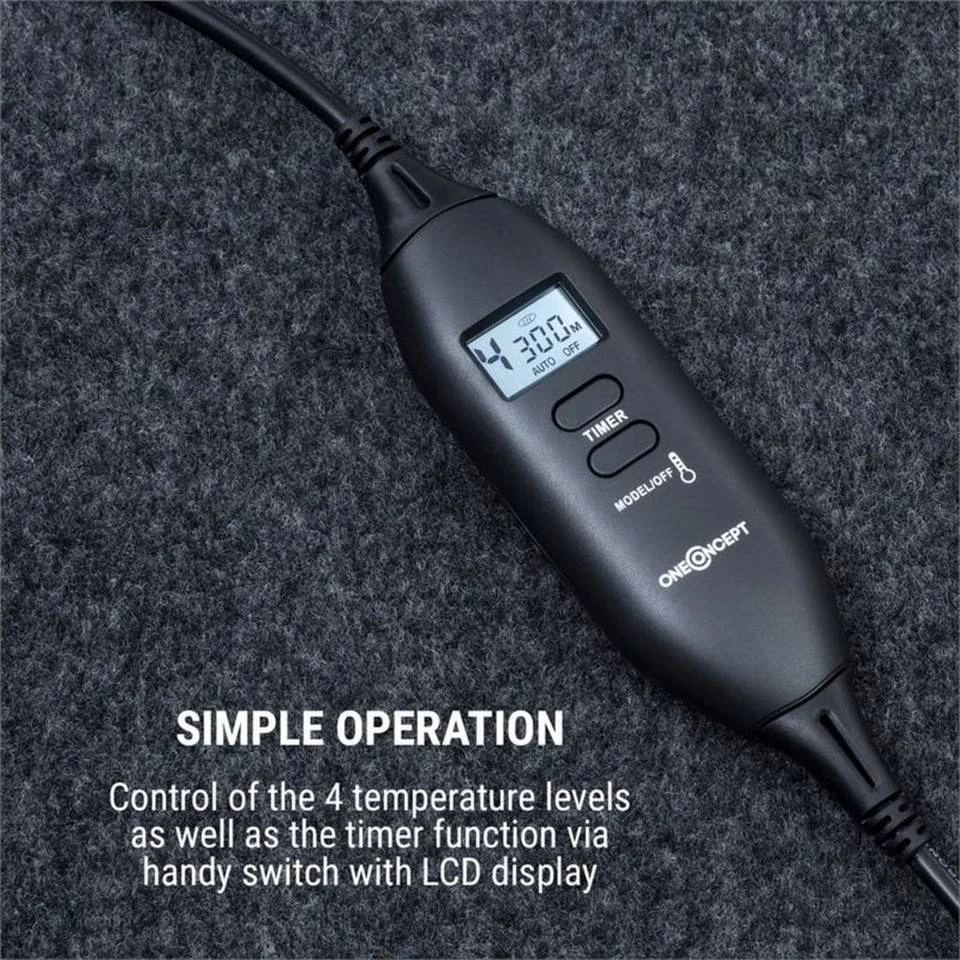- Einfache Bedienung: Steuerung der 4 Temperaturstufen sowie der Timer-Funktion per handlichem Schalter mit LCD-Display