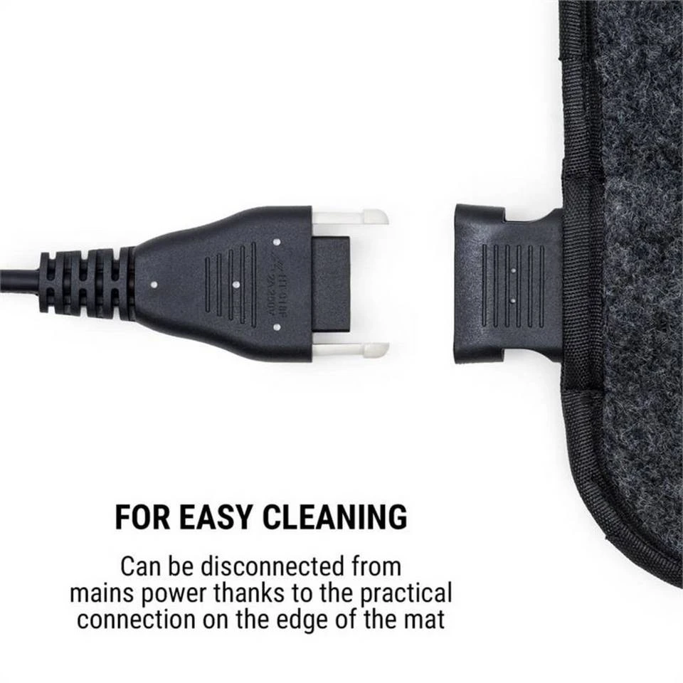 - Zur einfachen Reinigung: kann dank praktischem Anschluss am Mattenrand vom Strom getrennt werden