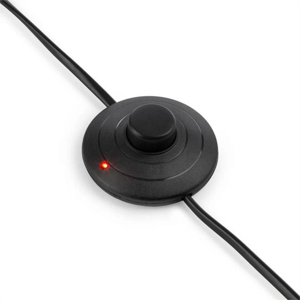 Angeschaltet wird die Heizmatte an einem großen Schalter, der komfortabel mit dem Fuß bedient werden kann. Ein Status-Lämpchen zeigt den Betrieb an, die Wärmeabgabe erfolgt nach einer kurzen Aufheizzeit konstant und energiesparend. Die Teppichoberfläche vermittelt den Eindruck von Kuscheligkeit, ist dabei aber sehr robust und strapazierfähig. An der Rückseite befinden sich kleine Noppen, die für Rutschsicherheit auf glatten Böden sorgen.