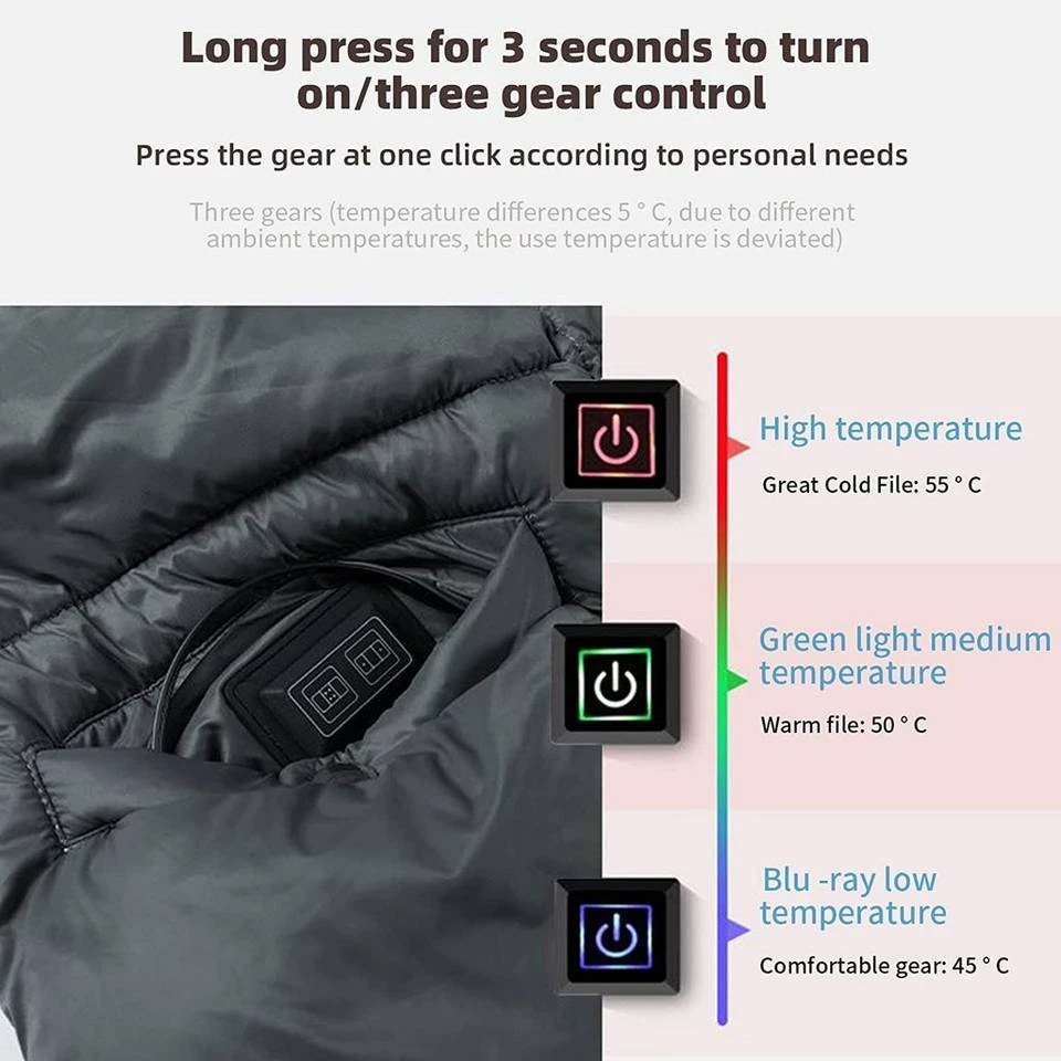 - Zum Einschalten 3 Sekunden lang gedrückt halten,und es gibt drei Stufen der Temperatureinstellung,kann nach Bedarf angepasst werden.