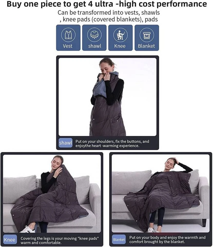 - Diese tragbare Heizdecke bietet eine vollständige Abdeckung des Körpers und misst im aufgeklappten Zustand 135 x 110 cm/51,14 x 43,30 Zoll,um Sie von Kopf bis Fuß warm zu halten.